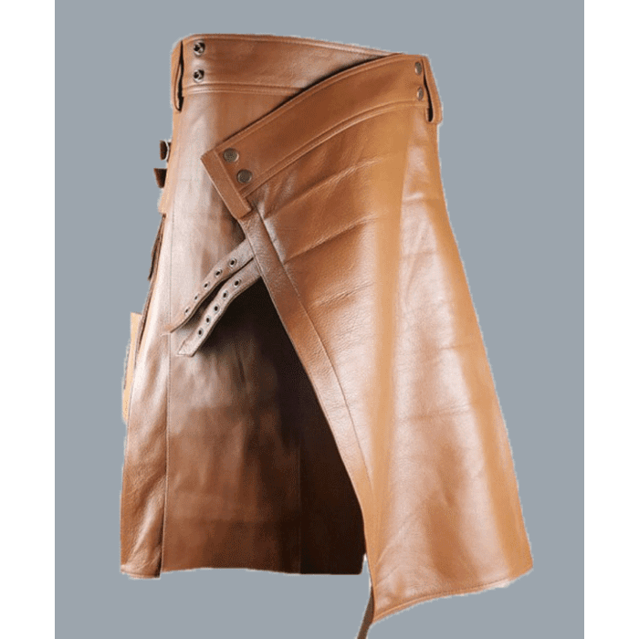New Leather Brown Utility Kilt available Very High quality 100% genuine leather. This Item hand made very high quality natural leather made item. We have almost all type of leather option to make a comfortable leather Kilts for you. Leather for all of our kilts is genuinely obtained from hides of cow or buffalo. Customize your Leather Kilt with top quality leather From Us.